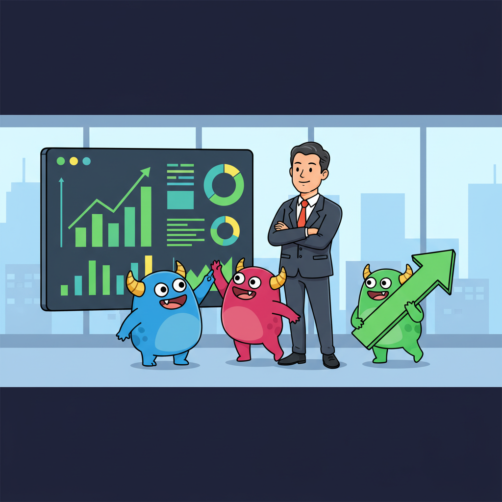 - 標準化されたKPI設計と進捗管理: 新規事業の探索においては、既存事業の知見を活かしつつも、客観的なKPIに基づいたGo/No-Goの厳格な判断が不可欠です。モンスターバンクでは、検証の問いとして「ユニットエコノミクス(LTV > CPA)は成立するか?」「拡大した際のオペレーションコストは適正か?」といった具体的な指標を設け、実証データに基づいた事業計画の精緻化を支援します。データドリブン経営におけるKPI設定と評価体系について、より深く知りたい方はこちらの記事もご覧ください。
