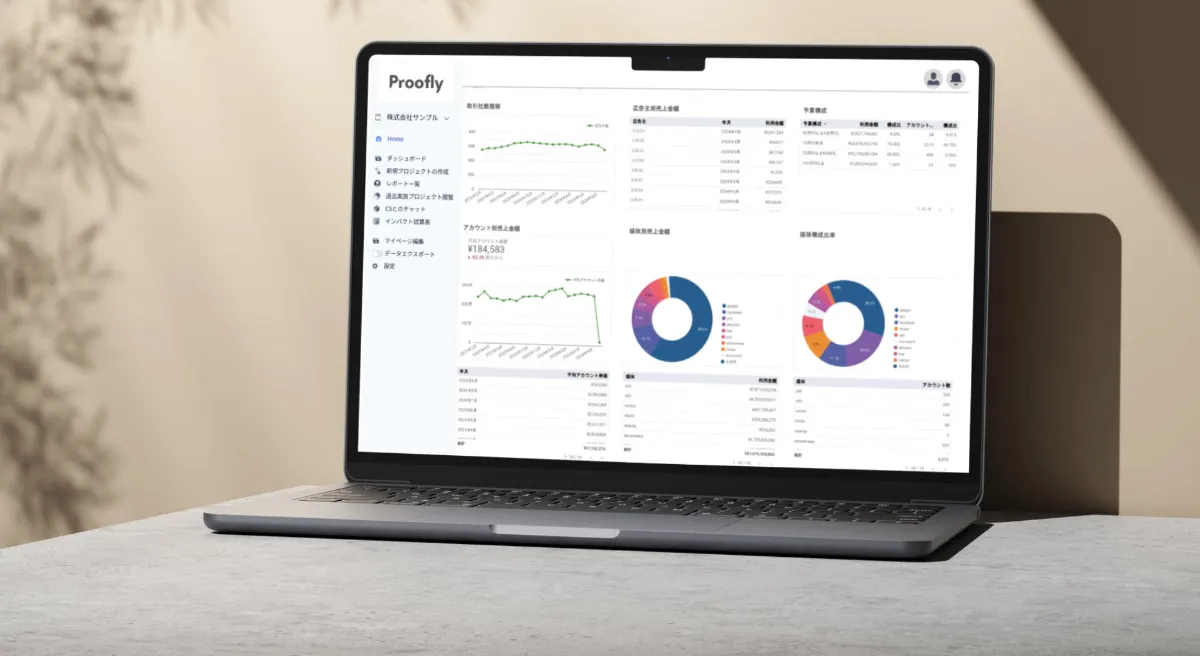 これまでにない効果検証プラットフォーム「Proofly」を提供しているスタートアップ企業です。どの業界でも決裁時に「費用対効果が合えば導入できるのに…」と思うシーンをよく目にするかと思います。とはいえ実際の商体験では短期的なトライアルはあるものの社内のリソースを割けなかったり、そもそもトライアルがなくサービスの試す機会そのものがない場面も多いはず。