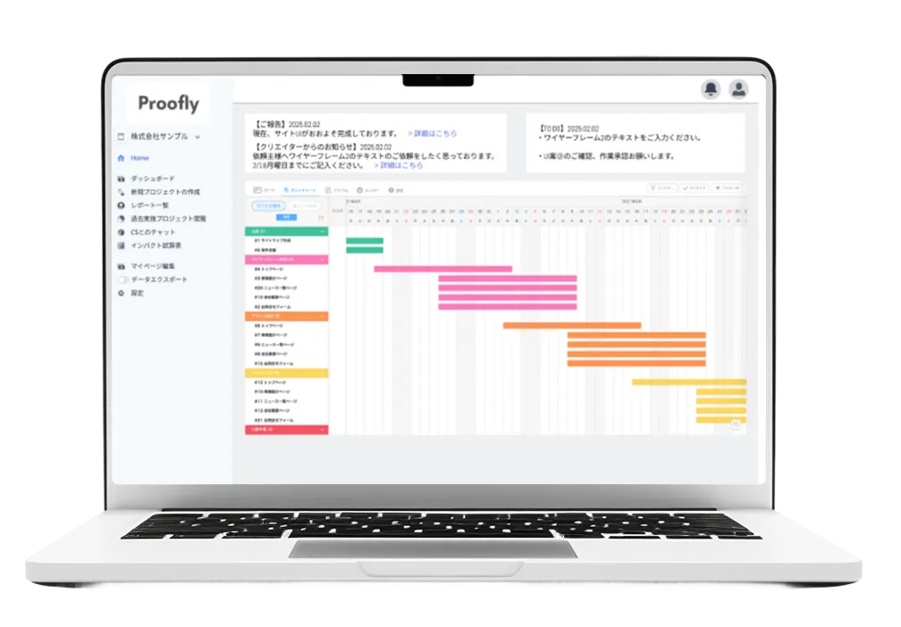 開発会社マターになる制作スケジュールや進捗を可視化します。