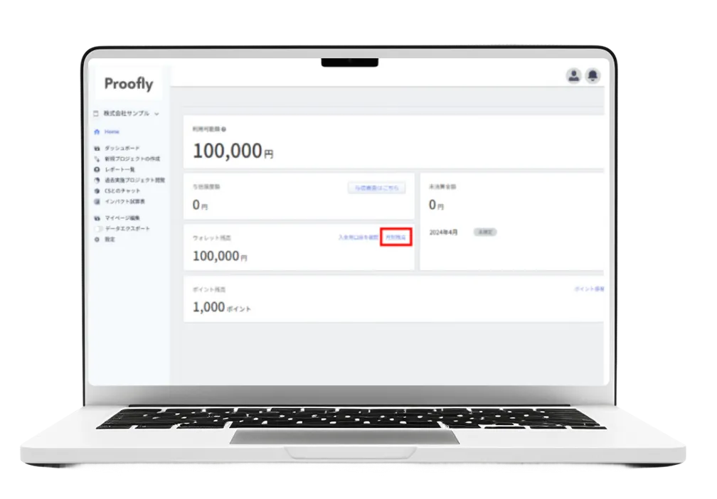 企業様によっては、年間のマーケ予算をPloofly内にご入金頂いて、